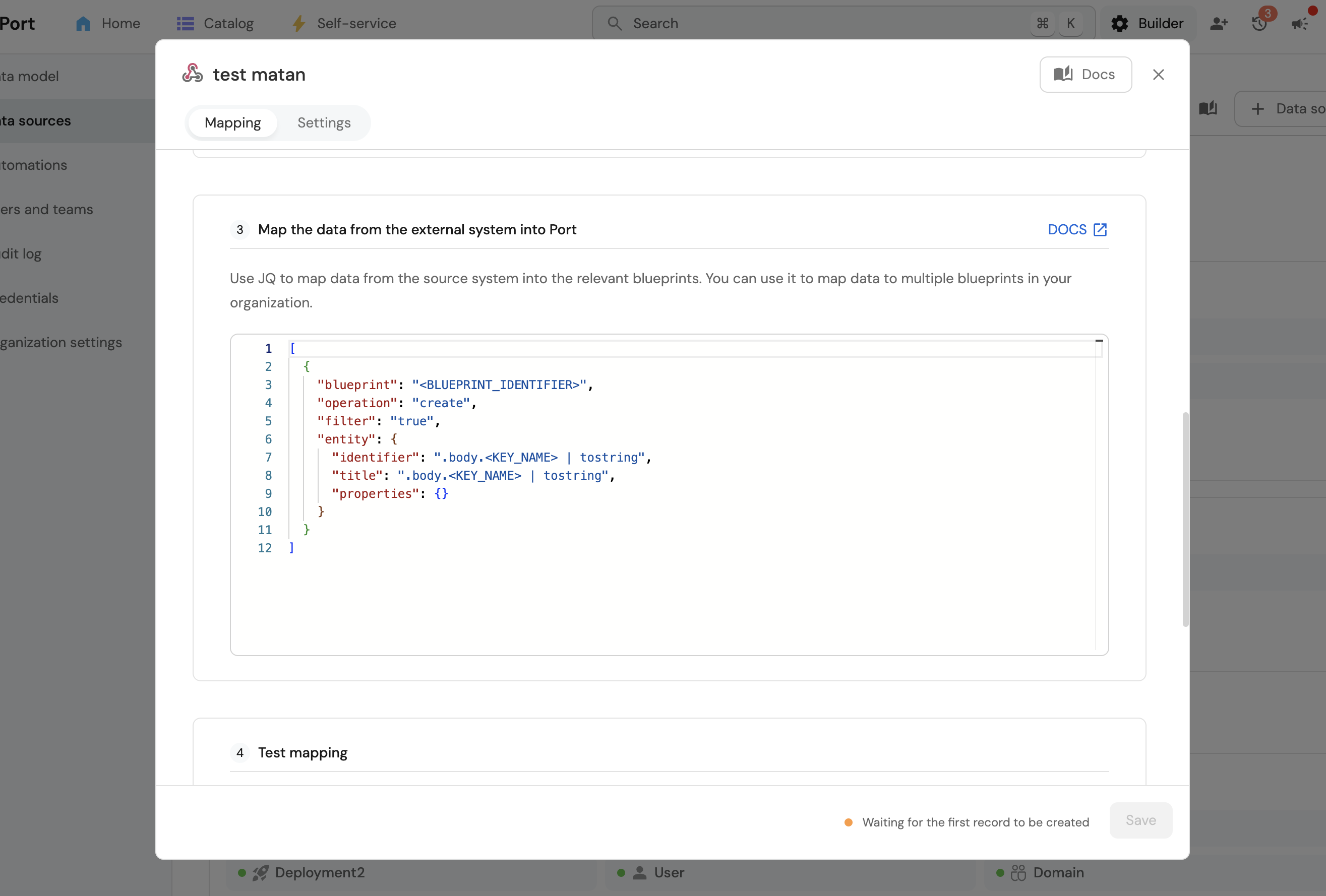 ). - Add the mappings below in the relevant section on the webhook configuration (see screenshot below).