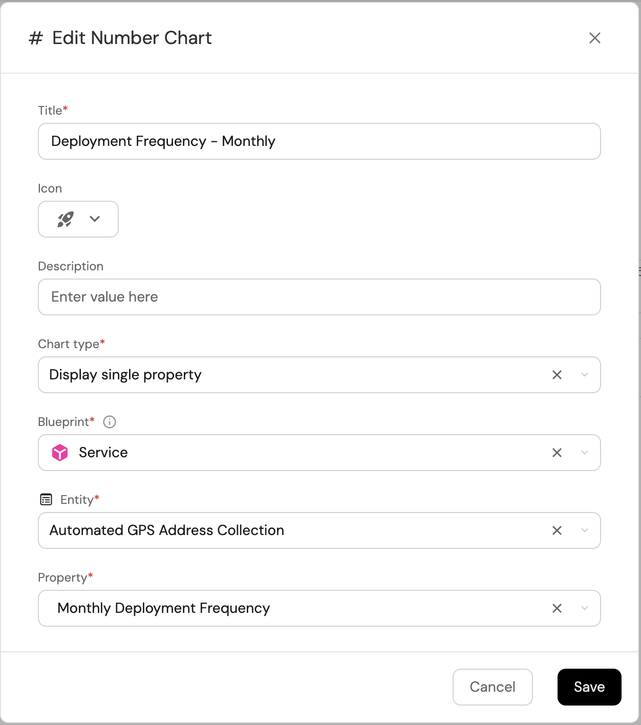 4. Select an Entity and choose Monthly Deployment Frequency as the Property.